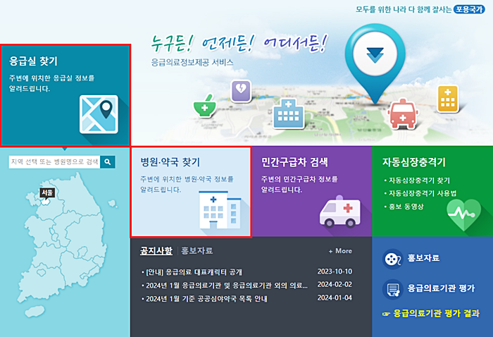 1. 중앙응급의료센터(E-GEN)에서 병원, 약국, 응급실 찾기
