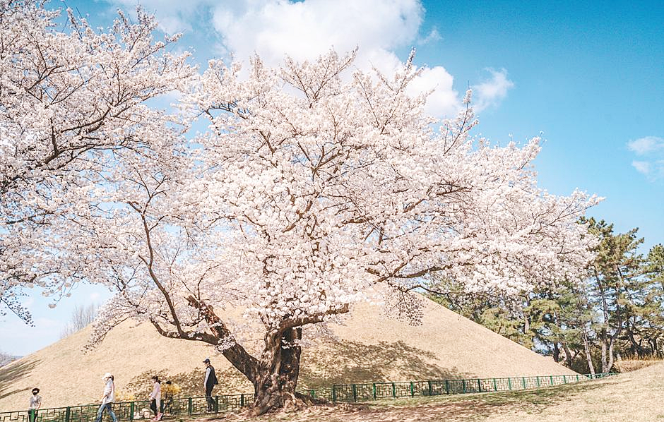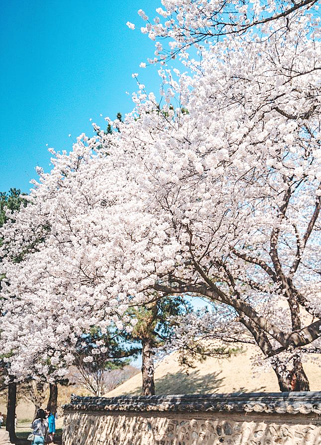 대릉원의 벚꽃 돌담길은 봄의 정취를 가득 품은 경주의 대표적인 명소입니다. 수십 년간 자란 벚나무들이 선사하는 꽃망울은 돌담을 따라 이어지며, 방문객들에게 봄의 화려한 매력을 선보입니다.