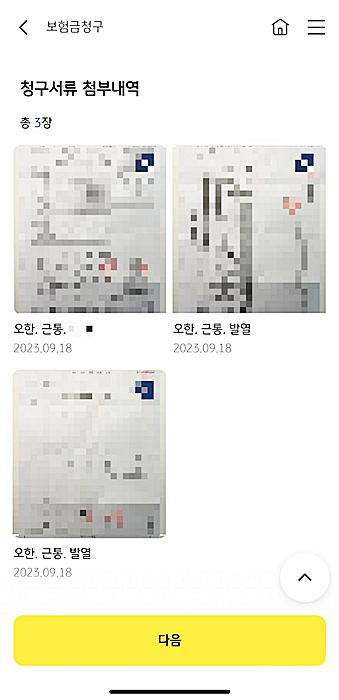카카오톡을 통해 접수 확인 알림이 도착하고, 일정 기간 후에 보험금이 통장으로 입금됩니다. 추가 서류가 필요한 경우 연락을 받을 수 있습니다.