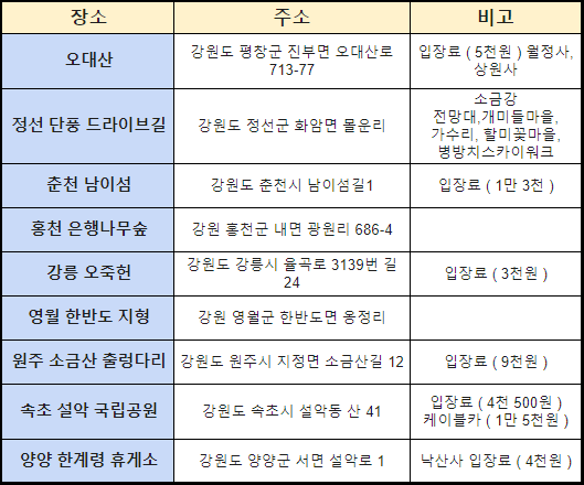 그 외 강원도 단풍 명소