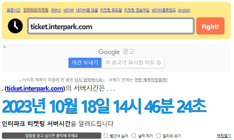 티켓팅 시간은 PC가 아닌 서버 시계로 확인해 주는 게 가장 좋아요.