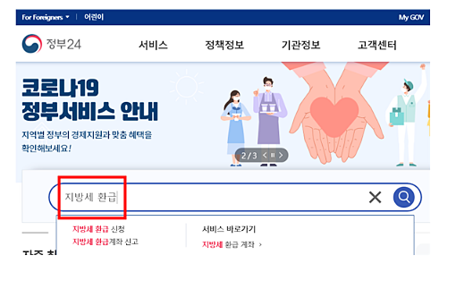 1. 정부24에서 ‘지방세 환급’검색