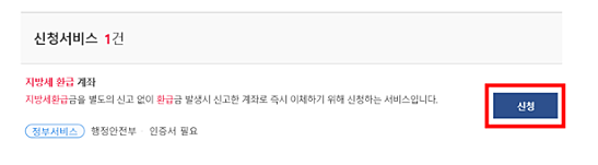 2. 검색결과에서지방세환급 계좌 ‘신청‘ 클릭