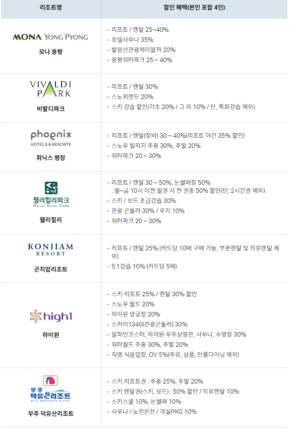 지금 바로 확인해보세요! 여러분의 스키장 여행이 더 즐겁고 경제적이길 바랍니다.